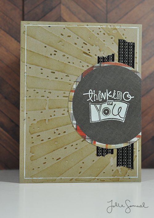 For today’s Masculine card I wanted to create a cards using “Thinking of you” as a sentiment and products that would stretch to both of projects. For both cards I used Embossing folders, washi tape, my circle cutter and papers from My Minds Eye.
