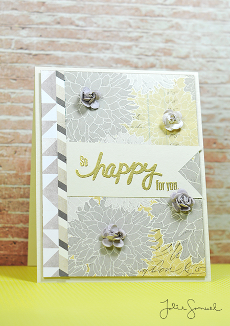 Today, I wanted to play around with some neutral colors that could be used for multiple occassions. This card features striped and geometric patterns mixed with a very floral. Typically I wouldn’t think to mix the two patterns together, but I think in such a small amount it’s quite pretty.