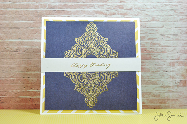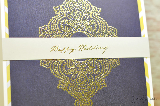 I decided to give it a more regal look by using Glam Gold embossing powder on a navy blue background. It looks so classy!